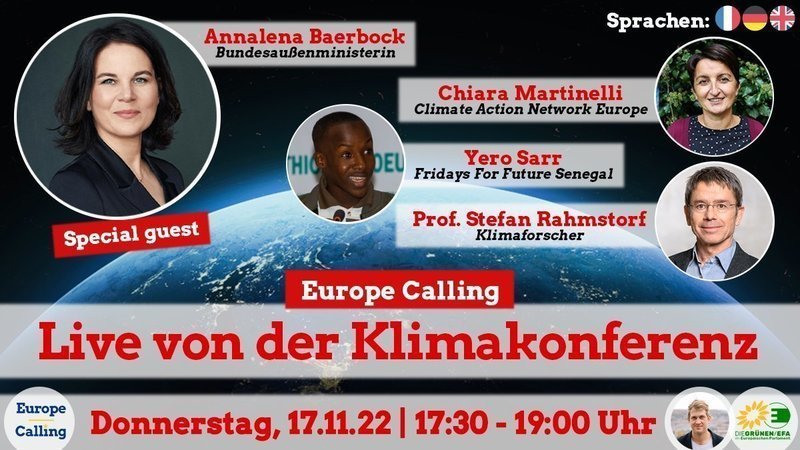 Die Weltklimakonferenz in Ägypten tritt in die entscheidende Phase ein. Mit vor Ort ist die Zivilgesellschaft, die Druck macht auf die Verhandler:innen. Haben Sie Erfolg? Europe Calling schaltet nach Sharm El Sheikh für ein exklusives Update direkt aus den Verhandlungen. Mit Special Guest, Annalena Baerbock, und mehr. Hier geht es zur Anmeldung!