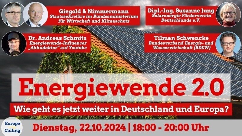 5 Millionen Deutsche verdienen mit ihren Solaranlagen an der erneuerbaren Zukunft. Jetzt entscheidet sich, ob das so weitergehen kann. Im Webinar von Europe Calling e.V. diskutieren wir BMWK-Staatssekretäre mit Wirtschaft und Bürgerenergie-Bewegung. Seid hier dabei: https://t1p.de/nkf4k
