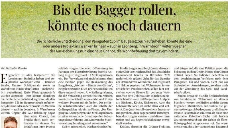 Actualización de la peticiónStoppt die Bebauung Hinter den Gärten in WarmbronnArtikel in der Leonberger Kreiszeitung