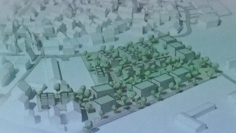Um einen Eindruck von der aktuellen Bebauungsplaanung zu bekommen, wurde während dr Infoveranstaltung eine 3D Visualisierung des Baugebiets präsentiert.