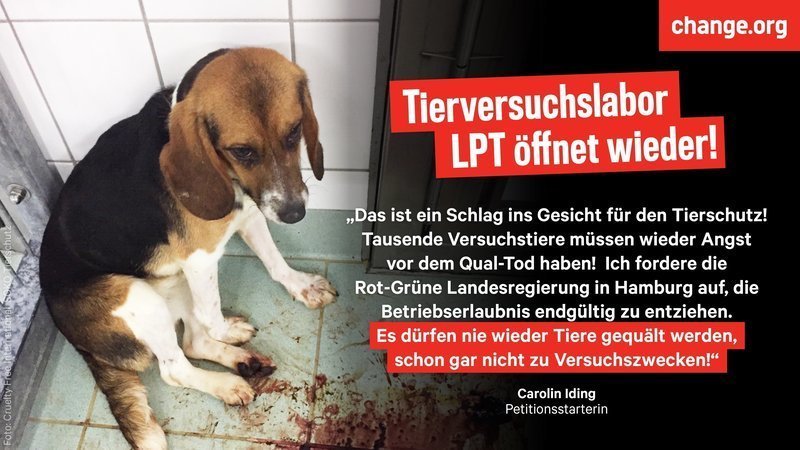 Gestern kam die schreckliche Nachricht: Nachdem zwei der drei Labore vor über einem halben Jahr geschlossen wurden, dürfen nun wieder Tiere im LPT Hamburg gequält werden.