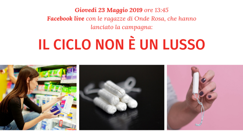 Bulletin d'alerte#StopTamponTax, il Ciclo è ANCORA un Lusso!Oggi alle 13.45 Facebook Live con le ragazze di Onde Rosa