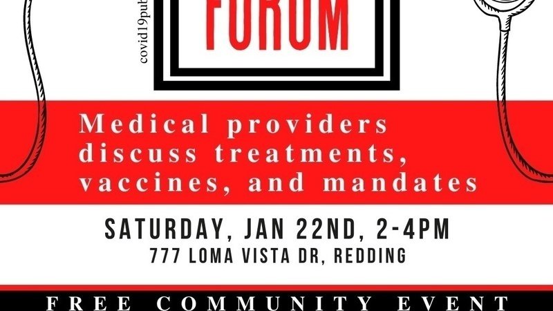 There will be an important Covid-19 Public Forum on Sat, Jan. 22nd from 2-4pm at 777 Loma Vista Dr. 96002. This might be the “wake up” moment for our community, please spread the word. It is non-political, but the doctors speaking follow the science of natural immunity and early treatment. They will also cover the ethics of medicine (informed consent, do no harm) and the risks/benefits of mandates vs. selective vaccination. The forum will go a little more than an hour and there will be time for public Q&A after. The “opposing” side will be invited as well. Those speaking on the forum are brave, well-respected local medical doctors.