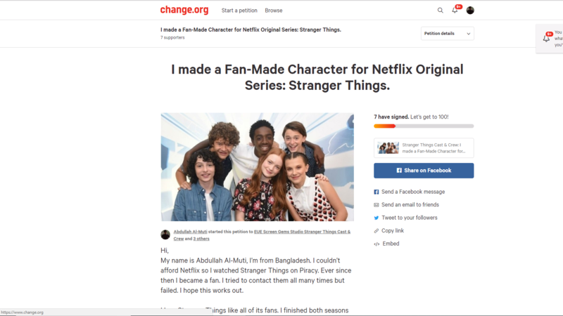 Petition updateI made a Fan-Made Character for Netflix Original Series: Stranger Things. #010Help me make it a 100