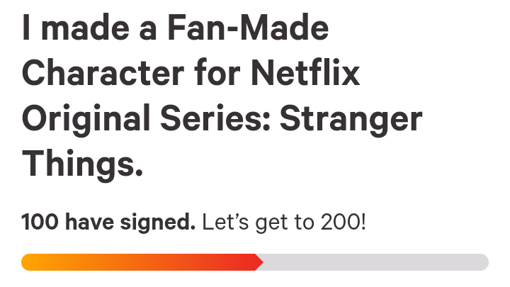 I got 100 Signatures. To all of you who have Signed, Thank You So Much. And do share it to your Friends who watches Stranger Things or believes this idea is Good/Okay/Amazing.
