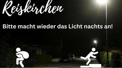 Es besteht zwar keine Pflicht, aber viele Reiskirchener Bürger wünschen sich wieder ihre durchgängige Straßenbeleuchtung zurück. Gibt uns das Stück Sicherheit zurück!