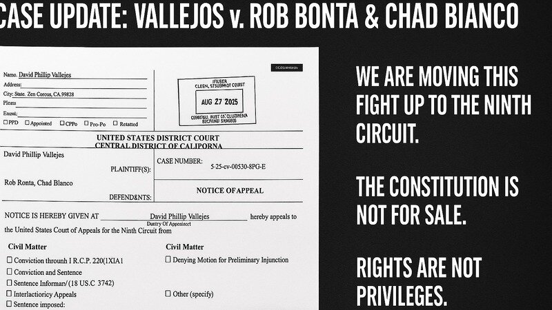 But I refuse to let corrupt officials and a broken system trample our rights. That’s why on August 27, 2025, I filed a Notice of Appeal to the Ninth Circuit Court of Appeals.