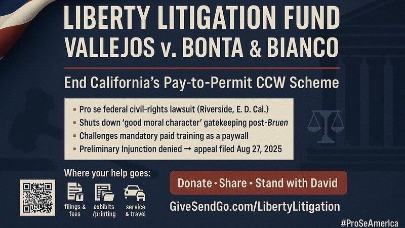🙏 I need your support: Share this link, donate if you’re able, and let’s back the one 2A attorney who had the courage to stand up for an ordinary citizen against the State of California. Together, we can prove that Rights Aren’t For Sale.