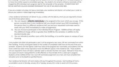 These three options will be enforced despite if you are a "Safe Space" (LGBT Protected) student, your roommate dropped out of the college, your roommate moved out without your knowledge, or your roommate was kicked out of school due to breaking codes of conduct. No matter what the reason for why you currently don't have a roommate, you will now be taken advantage of. Anyone who does not buy out the room, will immediately become ripe for the picking for options 1 and 2. Being forced out of your room goes by credits, meaning you could be a senior and still be forced to move from the room you once chose and settled into.