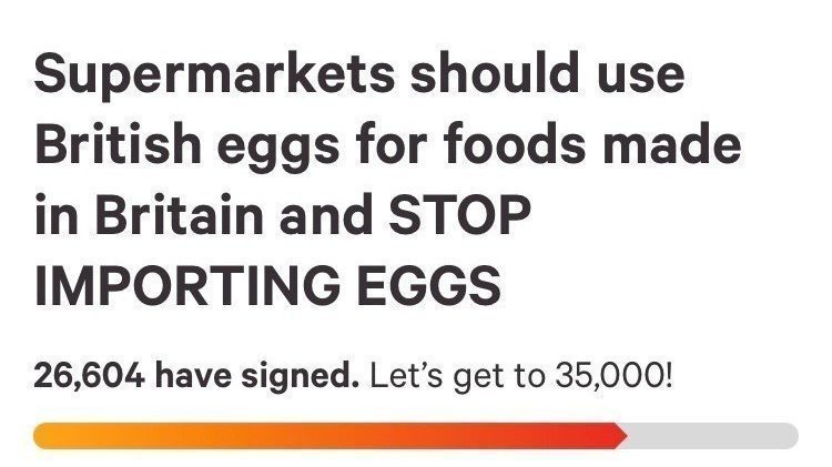 Neuigkeit zur PetitionSupermarkets should use British eggs for foods made in Britain and STOP IMPORTING EGGS25,000 SIGNATURES THANKS TO YOU