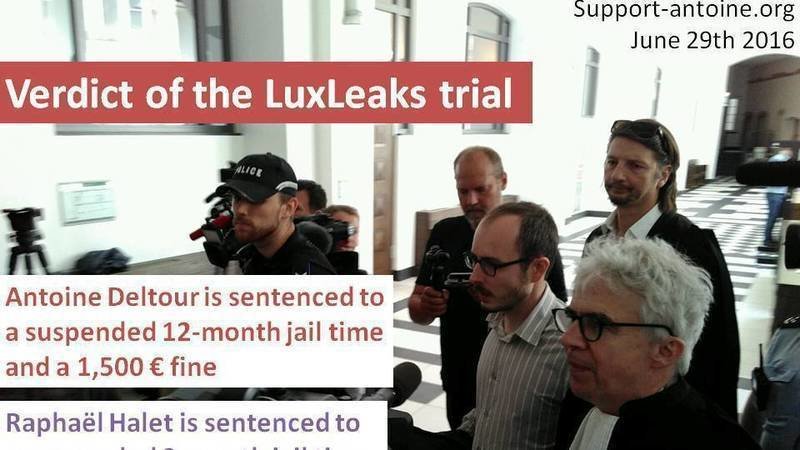 Yesterday, Wednesday June 29th, the 12th chamber of the Criminal Court of Luxembourg delivered the judgement of the “LuxLeaks” trial: Antoine Deltour is sentenced to a suspended 12-month jail time and a 1,500 € fine. Raphaël Halet is sentenced to a suspended 9-month jail time and a 1,000 € fine. The journalist Edouard Perrin is acquitted.