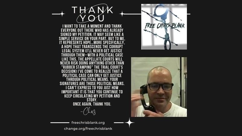 Petition updateSupport clemency for Christopher Blank! Help us bring him home after 20 years.Thank you for your support!!
