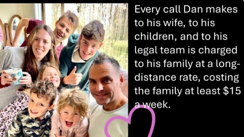 On top of all their expenses fighting for justice, each time Dan needs to call his wife, or his children, they are charged for a “long-distance” phone call - like something from the 1980s! This alone costs the family another $15 a week, on top of shopping, travel expenses to and from the prion, supplementing Dan’s prison food, trips to Canberra, school expenses and so on.