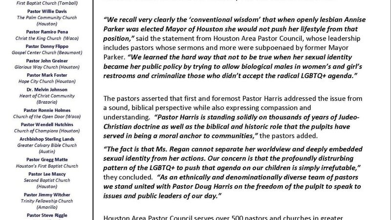 This week, the Texas Pastor Council issued a public letter defending Pastor Doug Harris and doubling down on the attack against Dr. Tiffany Regan—not based on qualifications, but based entirely on her identity as a gay woman.