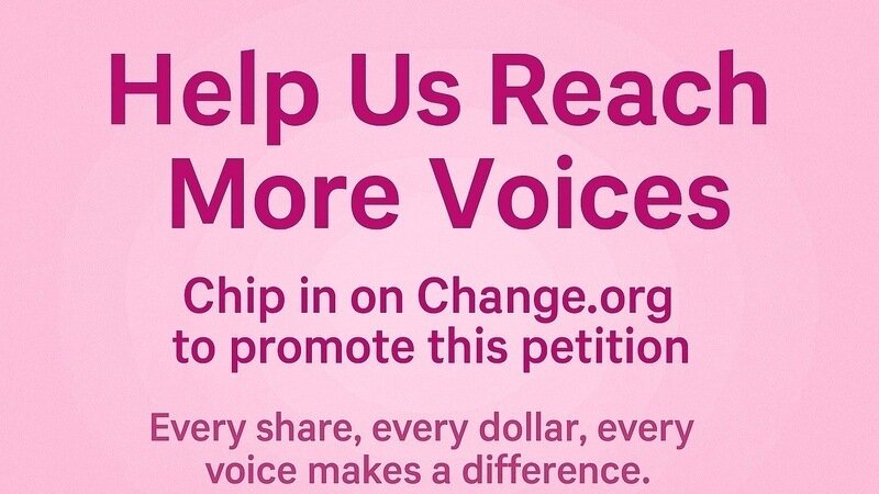 To keep building this movement, we need to reach more people in our community. Change.org allows supporters to chip in for promotion so the petition is seen by more eyes.