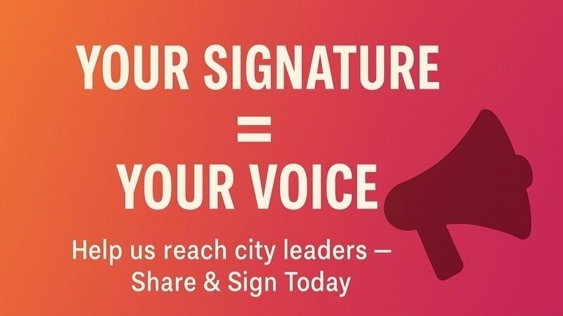 Ask your community to sign — church groups, coworkers, or neighbors. Every single signature shows the city that people care.