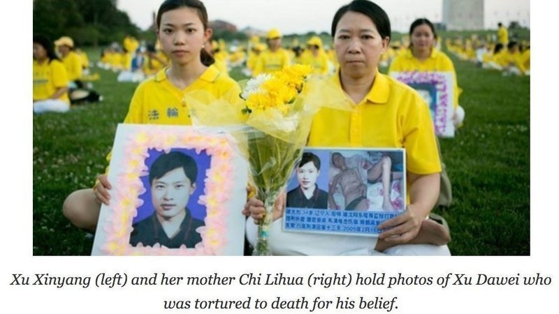 Xu Xinyang, 19, attends school in another state. She drove more than two hours to join her mother in Washington, D.C., so they could attend the candlelight vigil together. “My father was killed for his belief. I came here today to remember him,” she said.