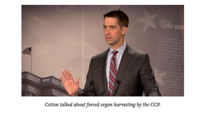 This is not the first time that Cotton, who serves on the Intelligence Committee, has voiced concerns about the CCP’s organ harvesting crime. In December 2020, Cotton introduced a bipartisan resolution titled the “Stop Forced Organ Harvesting Act” with Congressmen Chris Smith (R-New Jersey) and Tom Suozzi (D-New York). Senator Chris Coons (D-Delaware) and Representative Vicky Hartzler (R-Missouri) also joined the effort in March 2021.