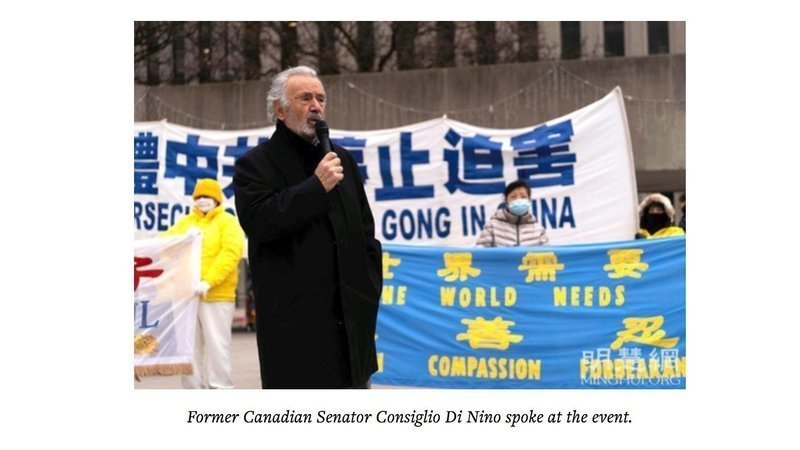 “We need to make our voices loud and clear, to tell the CCP that human rights violations are unacceptable,” said former Canadian Senator Consiglio Di Nino. “For many years, the CCP seems to have ignored such voices from the world.” He explained that is why he specifically came to this rally to support Falun Dafa practitioners.