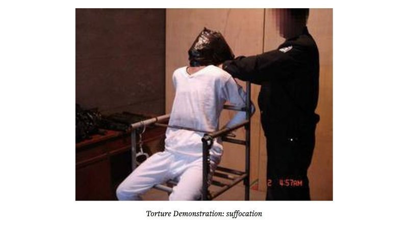 Police handcuffed Mr. Wei’s hands behind his back. They sprayed an unknown drug into a plastic bag and placed the bag over his head. Mr. Wei was forced to breathe in the corrosive drug fumes, suffocating him. Police director Li Jijun pushed the drug liquid accumulated at the bottom of the bag to Mr. Wei’s chin. Another officer sprayed the drug directly into his eyes which made Mr. Wei’s eyes tear up.