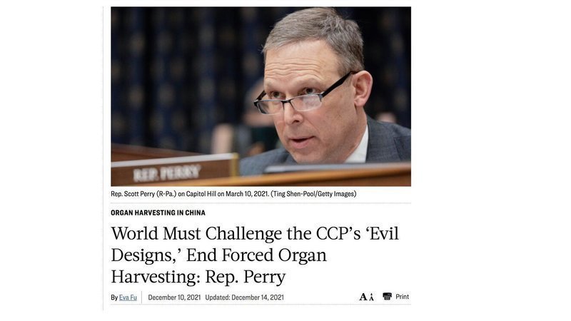 “These are living people having their organs taken from them,” Rep. Scott Perry (R-Pa.) said at a Dec. 10 webinar hosted by Doctors Against Forced Organ Harvesting, a Washington-based medical ethics group.