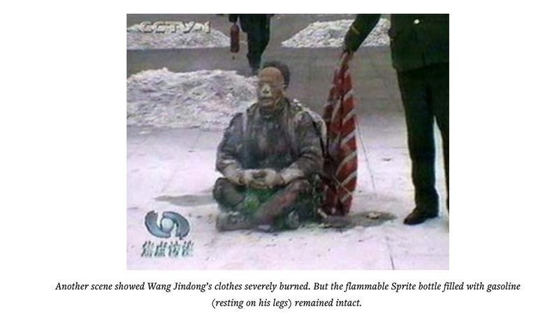 To sustain and escalate the persecution, Jiang and his followers created the self-immolation incident on Chinese New Year’s Eve 2001 and had the state-run media report on the hoax continuously. The event was even included in textbooks and other school reading materials to mislead students. Influenced by this systematic brainwashing, a large portion of the population changed from being sympathetic or indifferent, to having hostility and hatred towards Falun Gong. Since the self-immolation, the persecution escalated across China, resulting in sharp increases in arrests, torture, and deaths of Falun Gong practitioners.