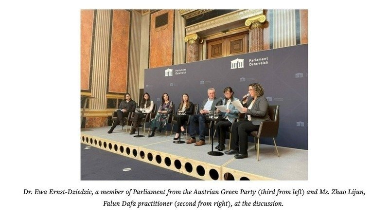 (Minghui.org) Dr. Ewa Ernst-Dziedzic, member of Parliament from the Austrian Green Party, along with the Public Welfare Foundation (COMÚN) hosted an opening ceremony on March 1, 2023 for a photography exhibition at the Austrian Parliament building that addressed the issue of “Global Forced Labor.” During the ceremony, which was a panel discussion featuring invited speakers, members of the Austrian Parliament and non-governmental organizations brought up a series of forced labor issues.