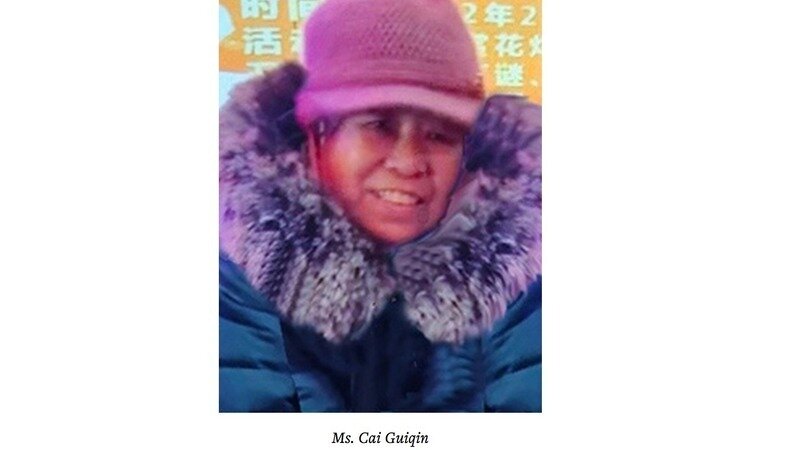 Chinese Name: 蔡桂芹 English Name: Cai Guiqin Gender: Female Age: 75 City: Jiamusi Province: Heilongjiang Occupation: Retired factory worker Date of Death: August 9, 2022 Date of Most Recent Arrest: July 19, 2008 Most Recent Place of Detention: Heilongjiang Province Women’s Prison