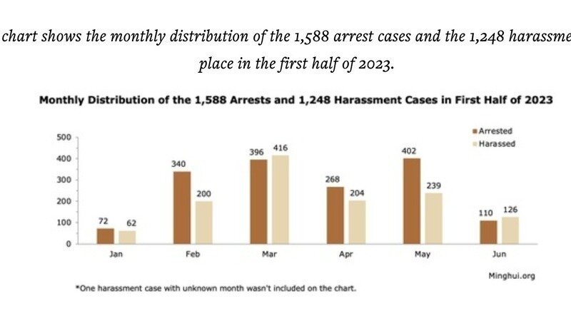 (Minghui.org) According to information collected by Minghui.org, 3,133 incidents of Falun Gong practitioners being arrested or harassed for their faith were reported in the first half of 2023.