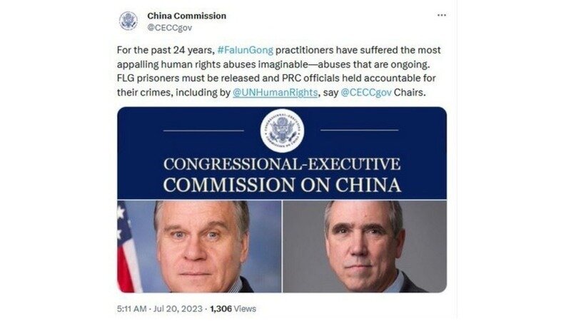 (Minghui.org) As the persecution of Falun Gong by the Chinese Communist Party (CCP) reached its 24-year anniversary mark on July 20, 2023, the Congressional-Executive Commission on China (CECC) tweeted on the same day, condemning the persecution and demanding the CCP to release all detained Falun Gong practitioners.
