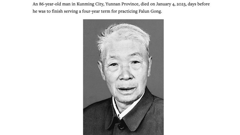 An 86-year-old man in Kunming City, Yunnan Province, died on January 4, 2023, days before he was to finish serving a four-year term for practicing Falun Gong.