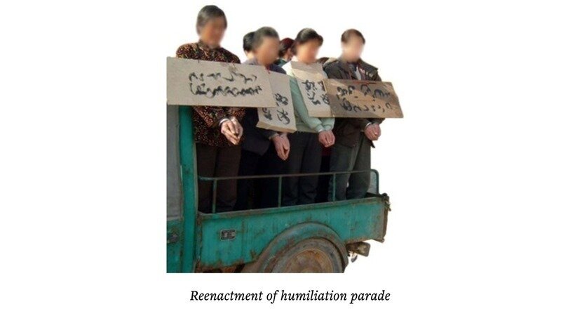 Mr. Wang was transferred to the Dazhu County Detention Center in January 2000. On the second day, the guards tied up him and other practitioners, hung a big poster board on each of their necks, pushed them onto a truck, and then took them around town for a humiliation parade.