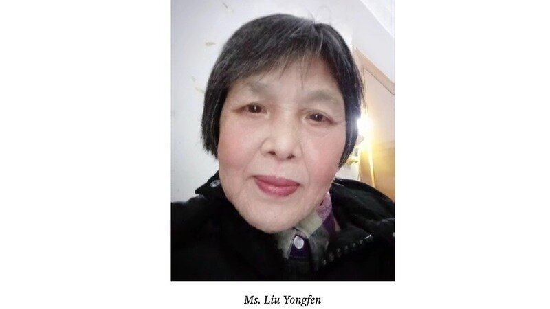Name: Liu Yongfen Chinese Name: 刘永芬 Gender: Female Age: 72 City: Zhuzhou Province: Hunan Occupation: Retired kindergarten teacher Date of Death: December 1, 2023 Date of Most Recent Arrest: October 30, 2016 Most Recent Place of Detention: Zhuzhou City First Detention Center