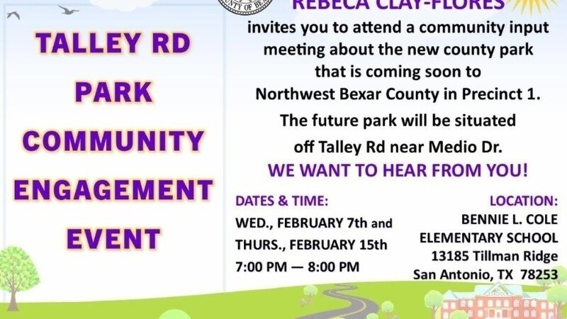 Also, don't forget the next Bexar County community meeting to discuss the park project is at 7:00 PM on Thursday, February 15th at Cole Elementary School.