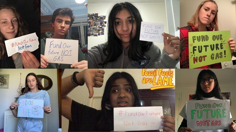 Whether it is getting your local crew together online to take a group selfie (like below), gathering with ten mates in a park to get a photo with a banner, or creating a giant art installation which spells out a clear message - together we can plaster local media and social media with the same message - we want the government to to #FundOurFutureNotGas!