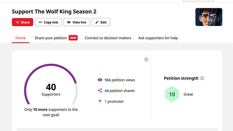 Petition updateSupport The Wolf King Season 240 and counting, help us get to 100 signers by the end of the week!
