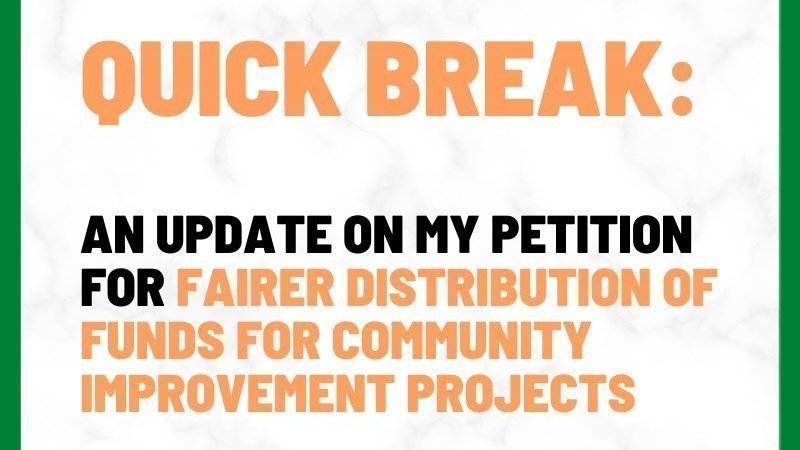 In August 2020, I wrote this petition in my own personal capacity to ask the Community Improvement Projects Committee (CIPC) to look into and approve community improvement projects by opposition-led town councils, especially the newly-formed Sengkang Town Council.