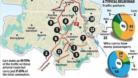 The urban development ministry, however, links the capital's congestion to the National Capital Region (NCR)'s - Noida, Ghaziabad, Gurgaon, Faridabad and other satellite cities - mismanaged traffic system.
