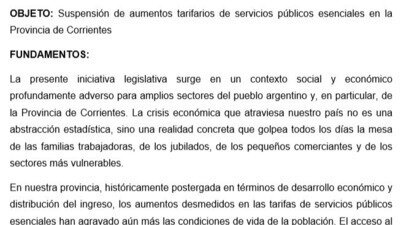 OBJETO: Suspensión de aumentos tarifarios de servicios públicos esenciales en la Provincia de Corrientes.