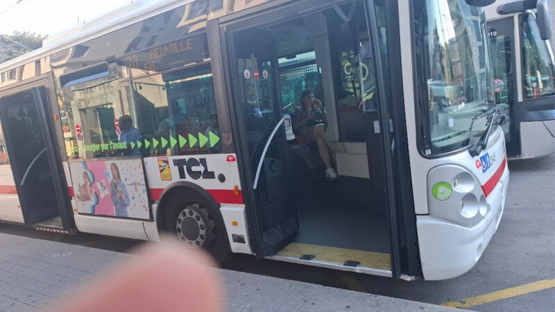 j’ai pris une photo du bus et j’aurais dû filmer pour publier sur les réseaux sociaux mais j’avais peur que des agents TCL désapprouvent. je vais tout de suite faire un signalement conso et santé et contacter le journal LE PROGRÈS !