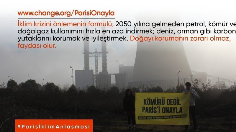 Bildiğin gibi dünyada anlaşmayı onaylamayan 6 ülke var ve ne yazık ki bunlardan biri de Türkiye. Türkiye’nin TBMM’nde Paris (İklim) Anlaşması’na katılma kararı alması gerekiyor. Kampanya süresince fark ettik ki Paris Anlaşması’nın ne olduğu herkesçe anlaşılamamış. Bu konuda yanlış ve yanıltıcı bilgiler var. Biz de anlaşmayı anlatan sosyal medya paylaşımları hazırladık ve bunları 19 Nisan 2021 saat 10’dan itibaren üyesi olduğumuz tüm sosyal medya kanallarında paylaşmaya başlıyoruz. Sizden de bize destek vermenizi rica ediyoruz.