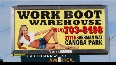 The Work boot warehouse billboards are objectifying women to sell an object (shoes) that do not have to be sexualized. I disregarded the billboards at first but they have been popping up in more places and I won't take it! The objectification of women needs to stop...NOW! Hopefully this will be one step closer to a more equal world for the sexes. Sign this petition and I will try to talk to the owner of Work boot warehouse and ask them to take down the billboards. Hopefully this will create a better more equal place for men and women in LA!!