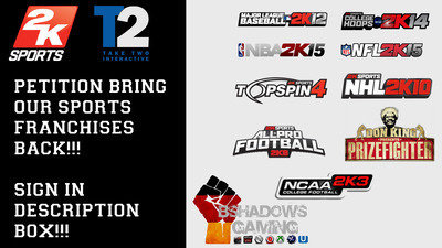 We the people and fans of all things 2k Sports request and demand that Take-Two stop canceling and return our series.