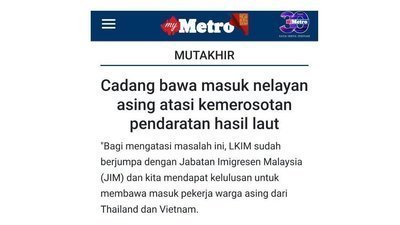 Mohon K'jaan M'sia SEGERA BATALKAN KELULUSAN yang diberikan oleh Jabatan Imigresen M'sia (JIM) kepada Lembaga Kemajuan Ikan M'sia (LKIM) untuk membawa masuk PEKERJA ASING Warga Thailand & Vietnam sebagai NELAYAN