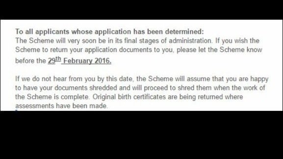 However, the original post concerning shredding records on the Symphysiotomy Payment Scheme's website (see photoshot of it below) indicated a clear intention to shred records in the case of all applicants who did not send in any indication / reply to an online announcement.