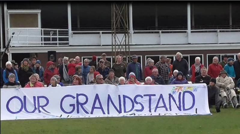 The banner shouts 'Save Our Grandstand" but fittingly, the photo here adds another message to Tasman District Council: