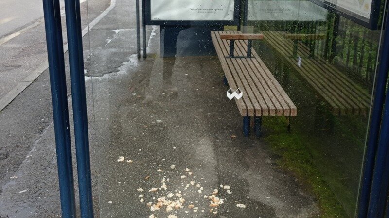 Brot an der Bushaltestelle - Hans-Bredow-Straße - Das sieht nicht nach Zufall aus - eher nach Absicht.