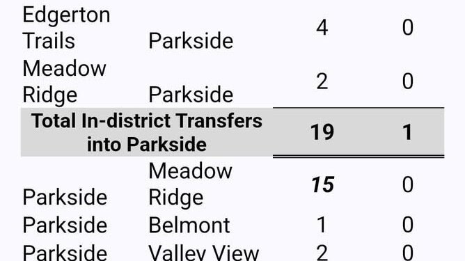 - 19 in-district transfers to Parkside (not 12).