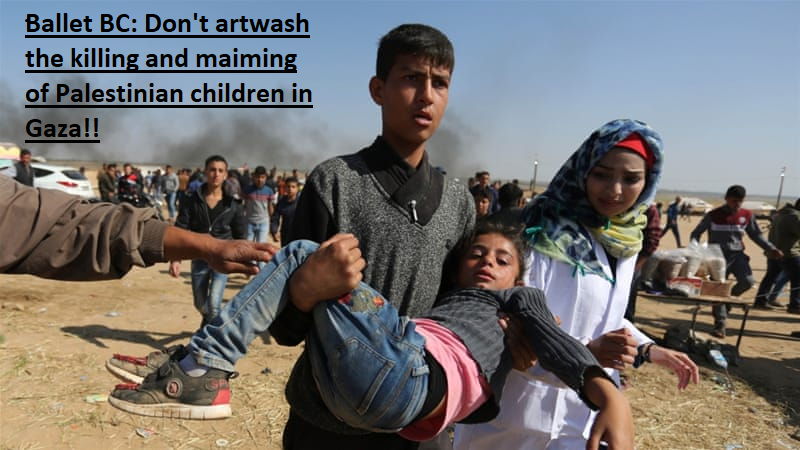 We are almost at 4000 signatures on this petition and still Ballet BC continues to ignore this outpouring of public sentiment telling them it is wrong to give cover to Israel's crimes. The people in Gaza continue to suffer, especially the most vulnerable, the children, but still they also teach us daily lessons on how to resist and survive. Ballet BC's only response to date has been a statement to the media, in which they said in part: "We are honoured to be a part of this festival and to serve as ambassadors for British Columbia and Canada." There is no honour in helping to trample on the human rights and dreams of a whole generation of Palestinians.