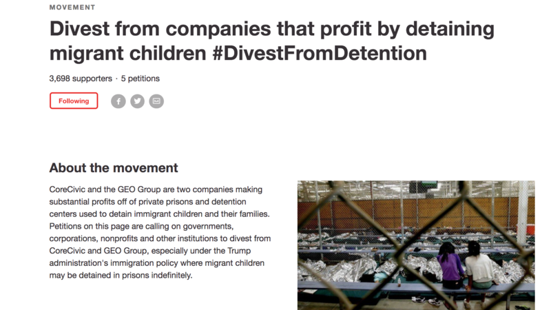 Petition updateReject money from private prison corporations that take children from immigrant families.Today Americans Marched to Unify Families. Now: Demand Democrats DIVEST from Private Prison Profits